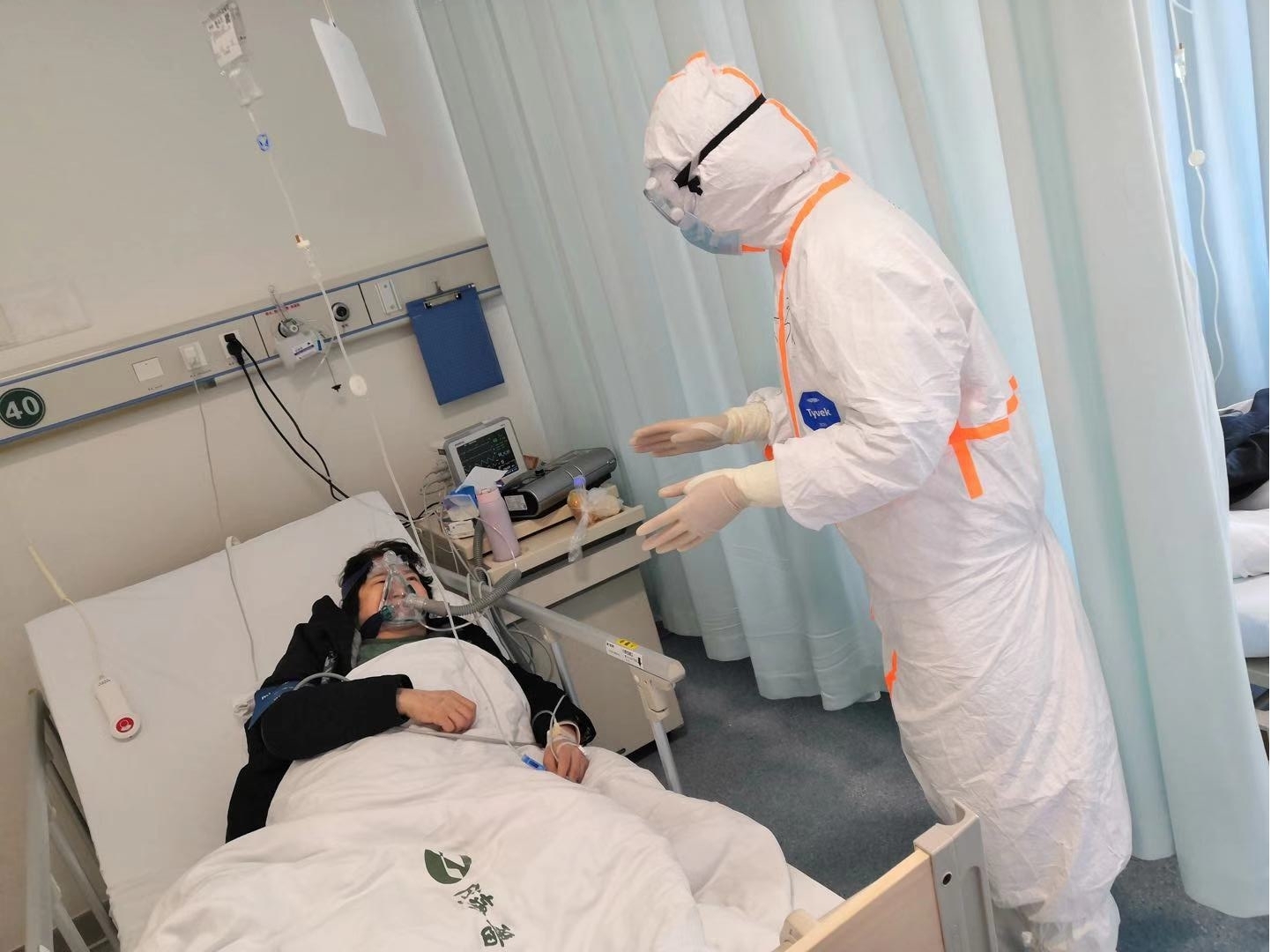 病房开放当晚就收了33个病人,病房外站满了准备入院的病人,一边是极度恐慌着急入院的病人,一边是第一天穿上防护服上岗的护士们,“她们很多是80后、90后的孩子们,从普通病房工作状态转为传染病房的工作状态,大家很害怕,都不说话,空气里弥散着紧张的气氛。”
